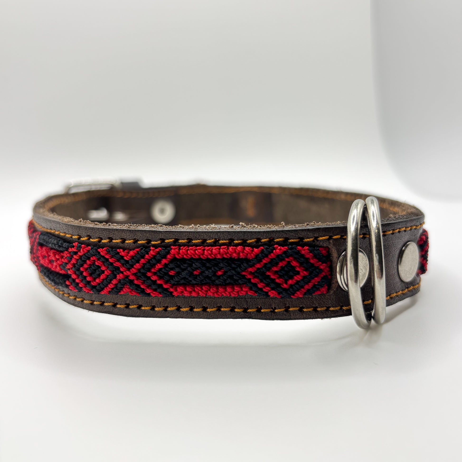 Bold, sleek and powerful, the Obsidiana collar weaves deep black and vibrant red into a striking diamond pattern. At 45cm this Large collar is perfect for dogs who embody strength, elegance and presence โ a true statement piece inspired by volcanic stone.