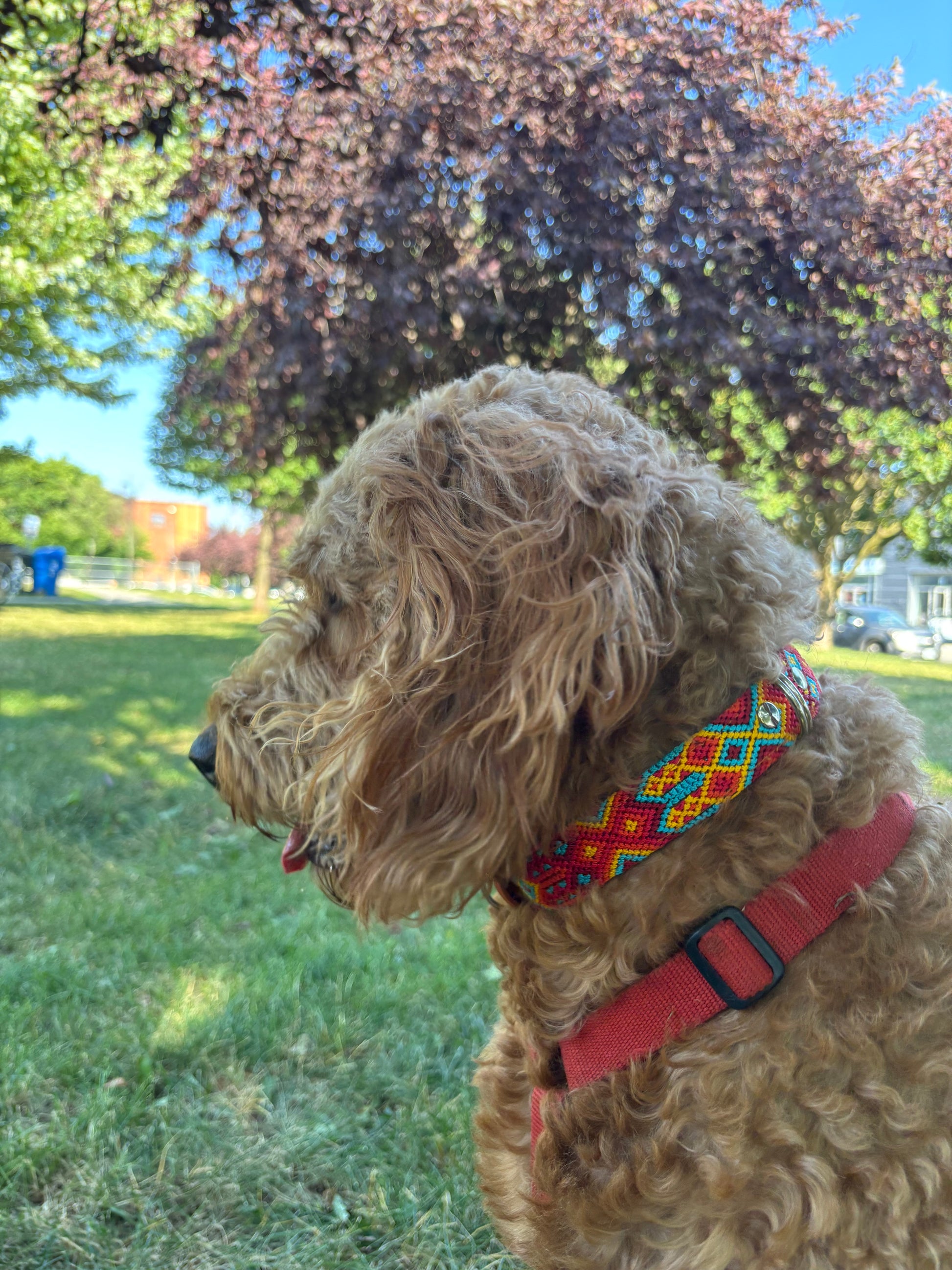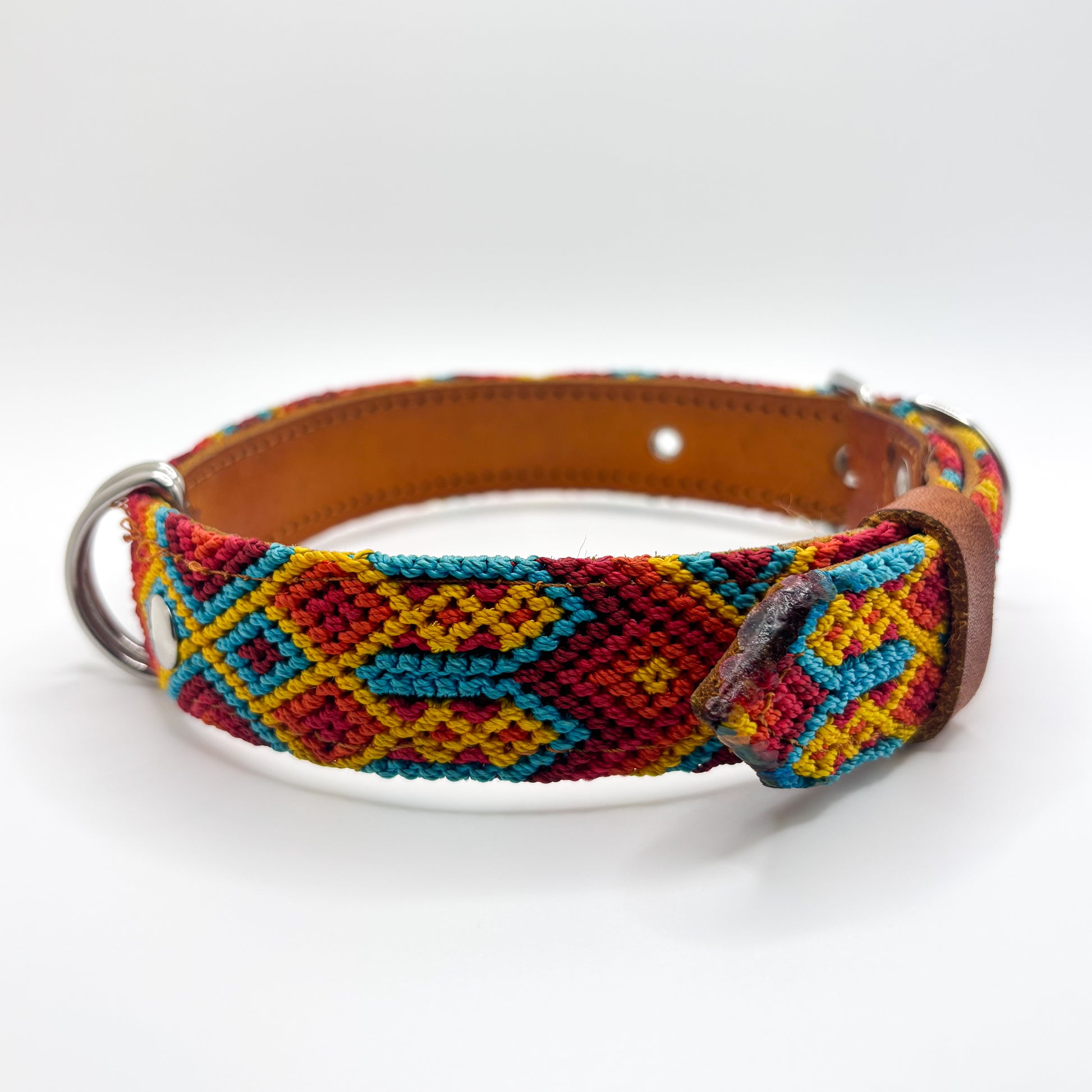 Bright, bold, and full of energy, the Sol y Mar collar captures the warmth of the sun and the cool refresh of the sea. With fiery reds, golden yellows, and turquoise blues, it’s a statement piece for pups who love adventure and color.
