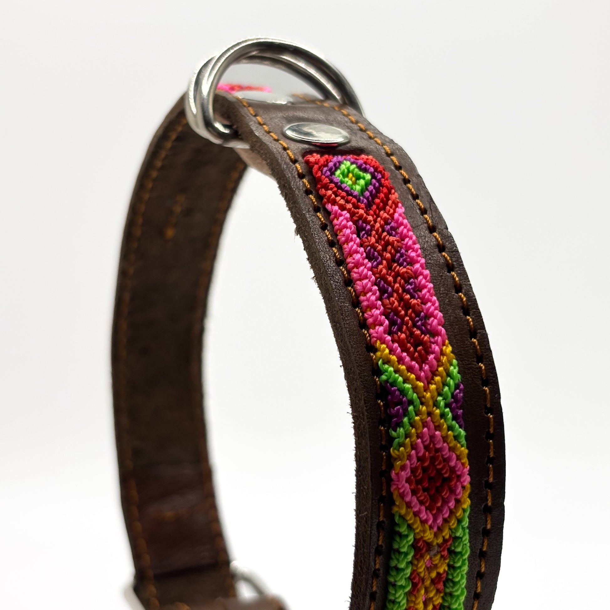 🌸 Bright, bold and full of spirit, the Alegría collar brings together vibrant pink, red, green, yellow and purple in a joyful diamond weave. At 40cm this Medium collar is perfect for dogs who carry happiness and color wherever they go.